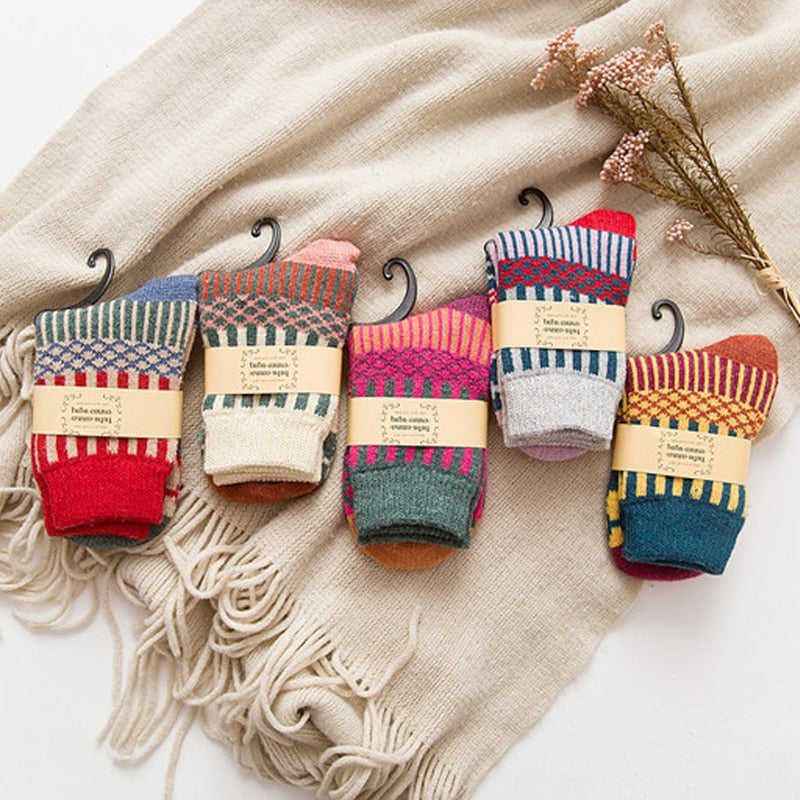 Anysox 5 Pairs One Size 5-9 Multicolor Winter Thick Warm Wool Socks With Colorful Fashionable And Casual Euramerican National Wind-Flowers Sock