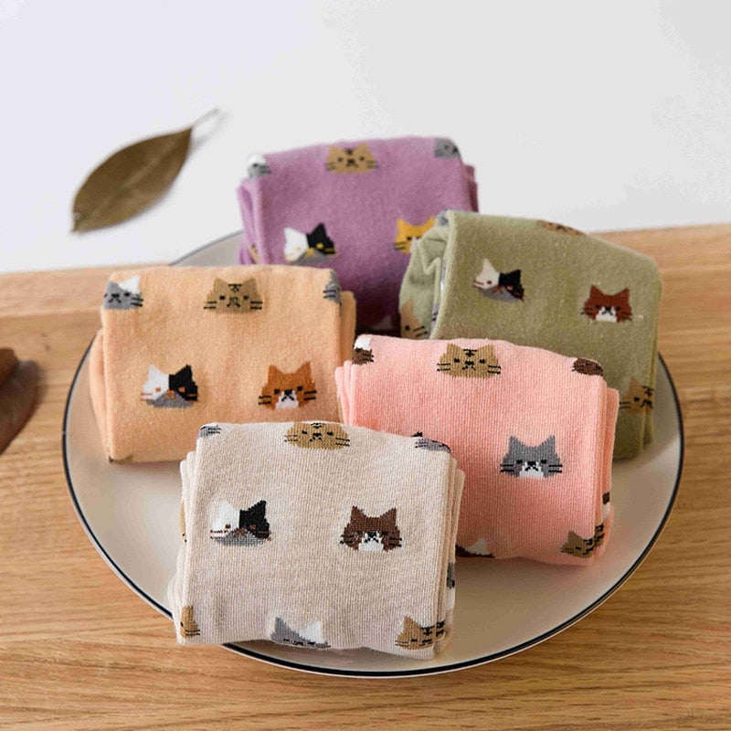 Anysox 5 Pairs Size 5-9 Fashion Socks Thick Warm Cotton Cute Cartoon Cat Animal Ankle Short Casual for Ladies Girls Christmas Gifts Pink