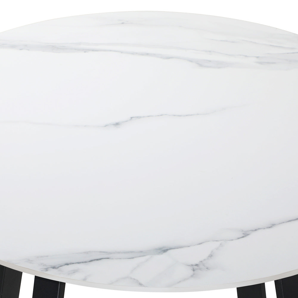 The set includes a nice round table and comfortable chairs, creating an inviting and functional outdoor dining area. The table provides ample room for serving meals, playing games, or simply enjoying drinks with friends and family. Its sturdy construction ensures stability, while the sintered stone tabletop surface makes cleaning a breeze.