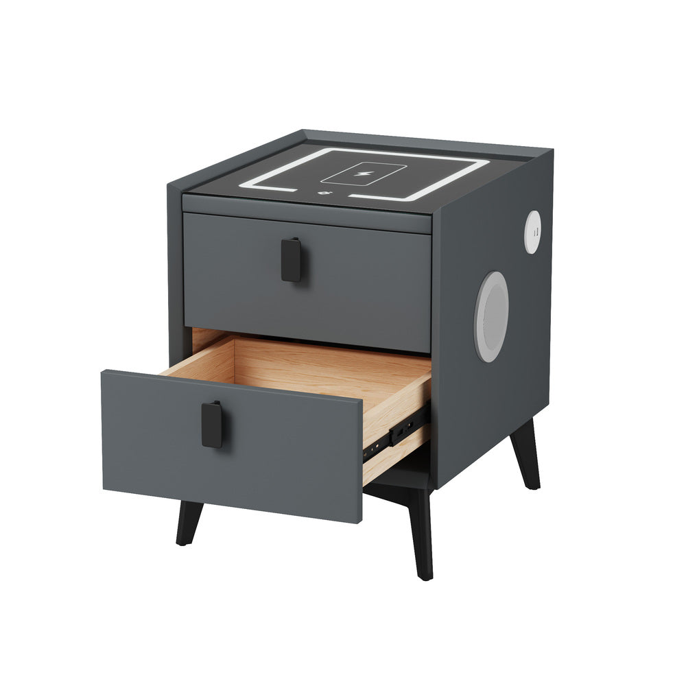 Oikiture 2x Smart Bedside Tables Wireless Charging LED 2 Drawers Grey