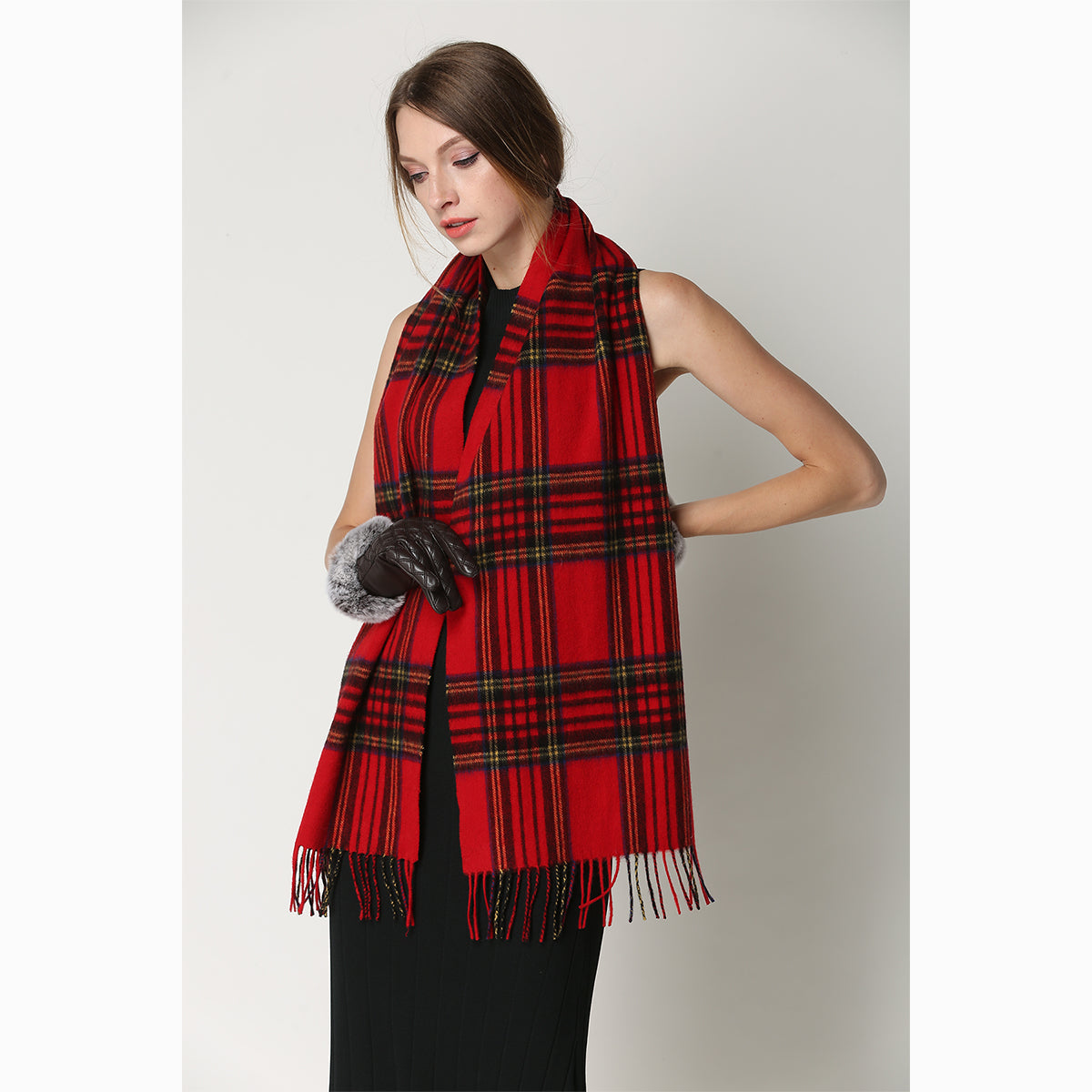 The classic check pattern in red and navy adds a touch of sophistication to any outfit. Whether you're heading to the office or going out for a casual weekend brunch, this scarf will elevate your look.